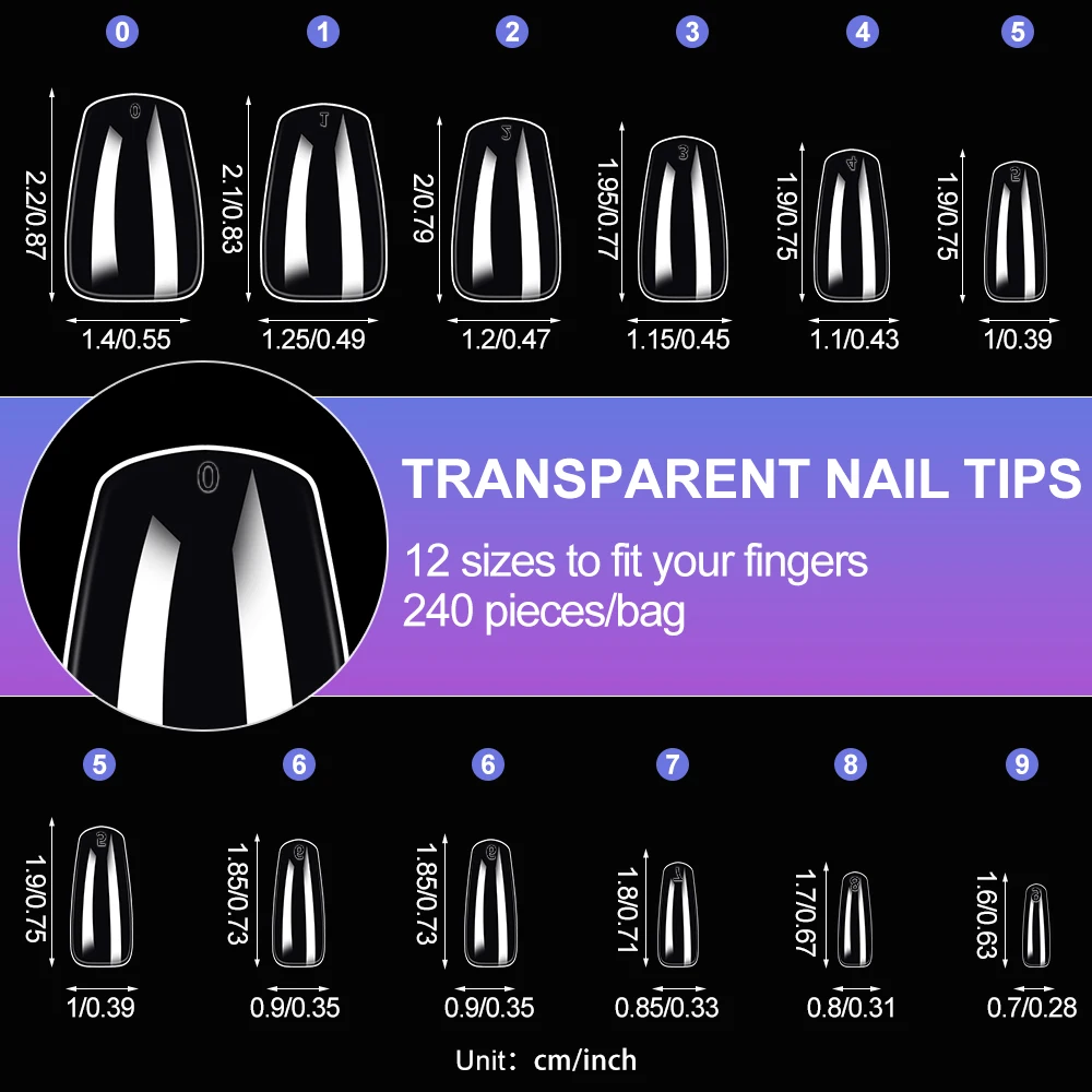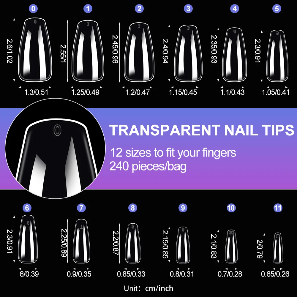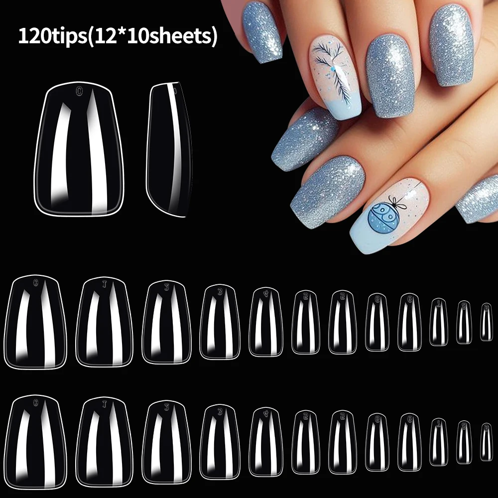 120pcs Clear Coffin/Oval/Square Fake Nail Tips 12 Sizes Soak Off Soft Gel Nail Tips Extension Professional Acrylic Press On Nail