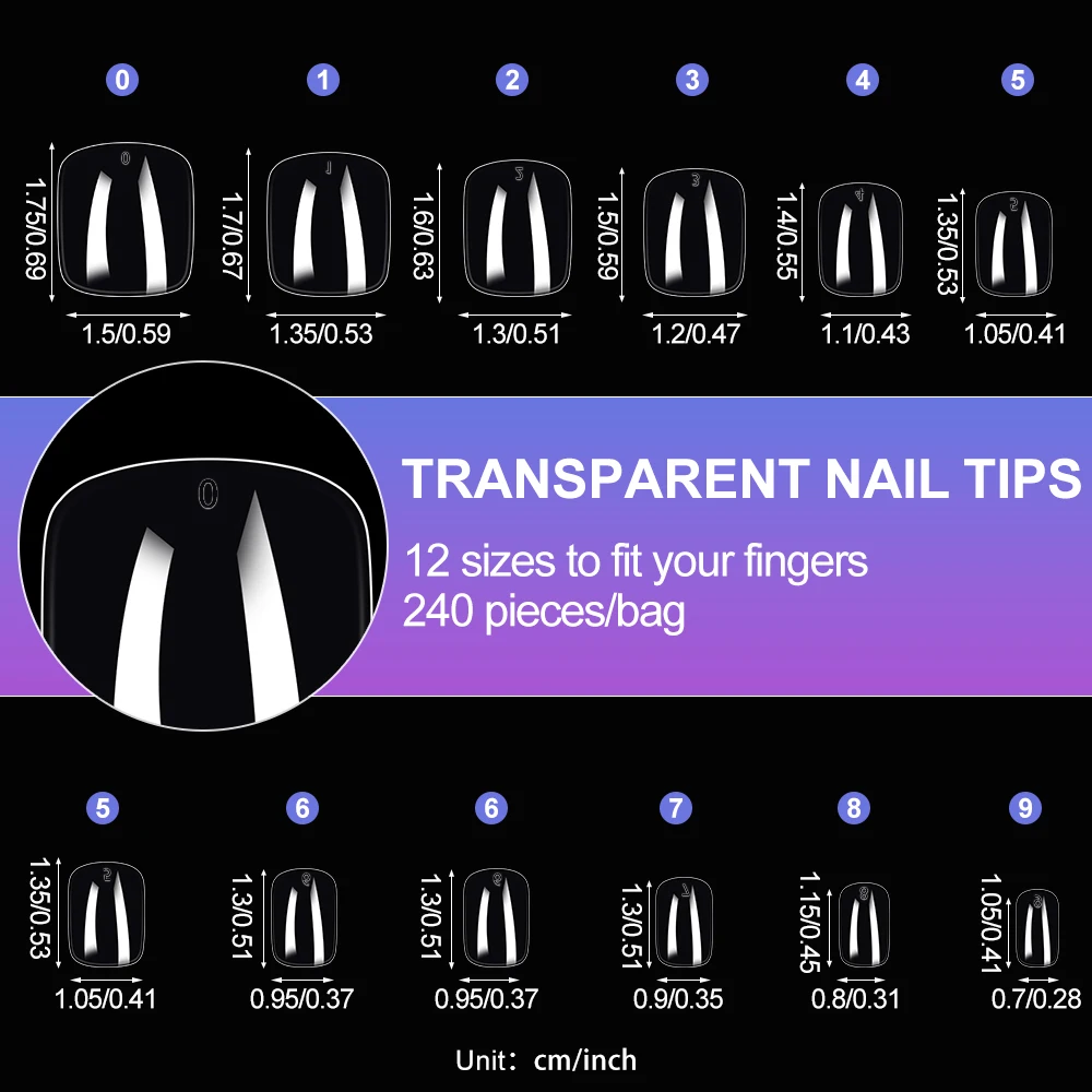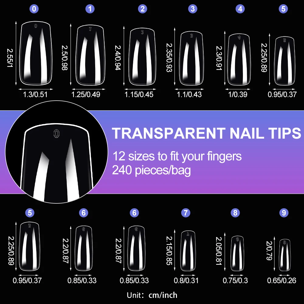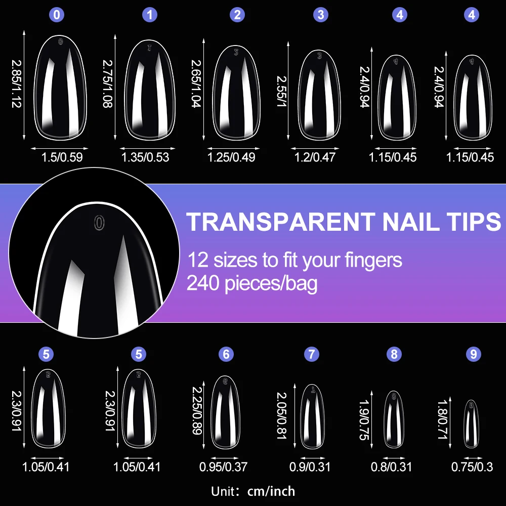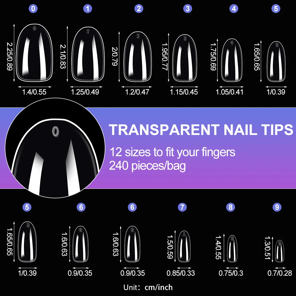 120pcs Clear Coffin/Oval/Square Fake Nail Tips 12 Sizes Soak Off Soft Gel Nail Tips Extension Professional Acrylic Press On Nail