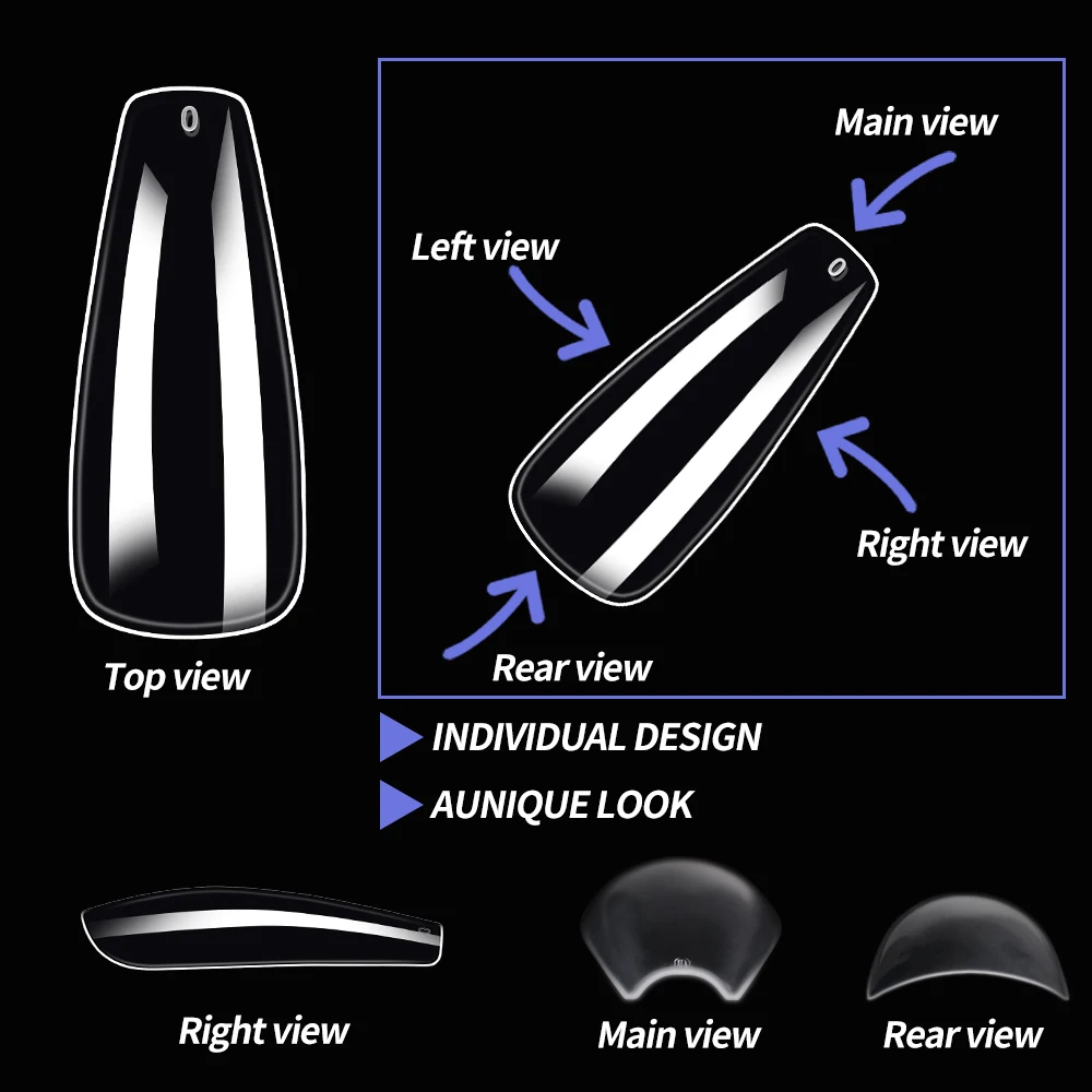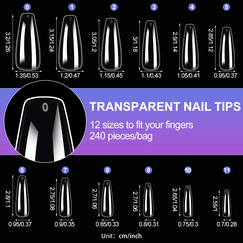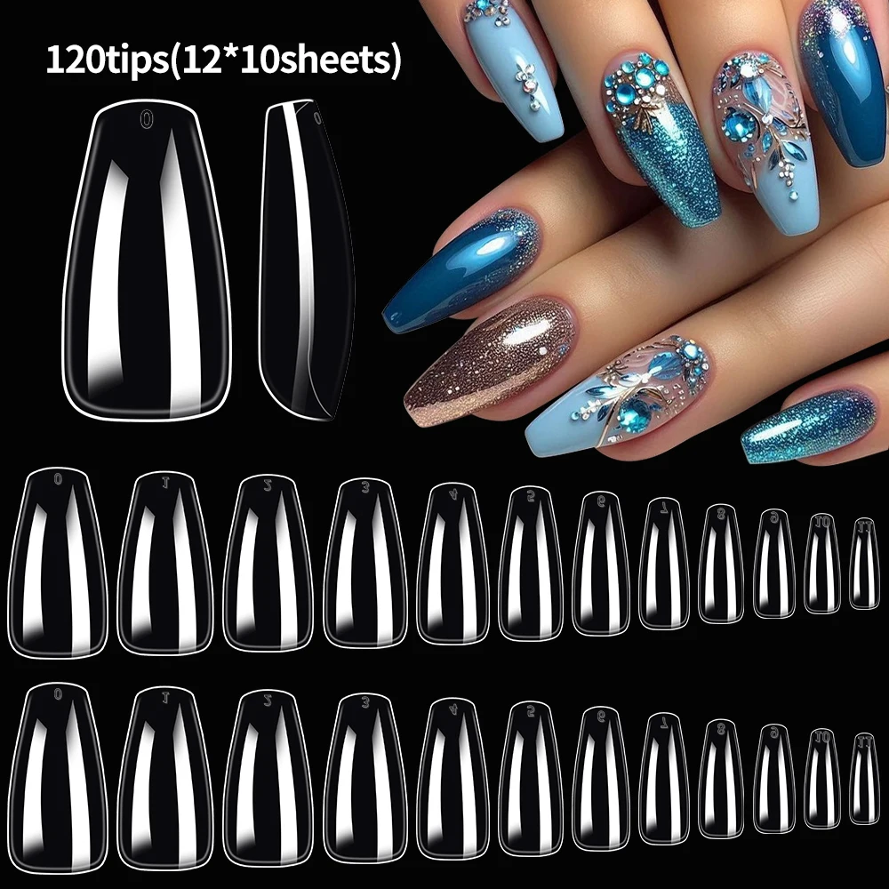 120pcs Long Ballerina Gel False Nail Tips Clear Soft Coffin French Fake Nails 12Sizes Full Cover Acrylic Artificial Extension Tips